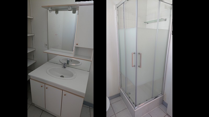 Salle d'eau avec douche, wc, meuble et étagères (4 m2)